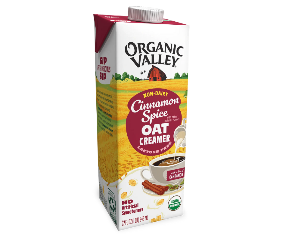 Creamer yến mạch vị Quế – Cinnamon Spice Oat Creamer từ Organic Valley là lựa chọn hoàn hảo cho những ai yêu thích hương quế thơm nồng hòa quyện cùng vị béo mịn của yến mạch hữu cơ, mang đến cảm giác thư giãn, dễ chịu và tràn đầy năng lượng.