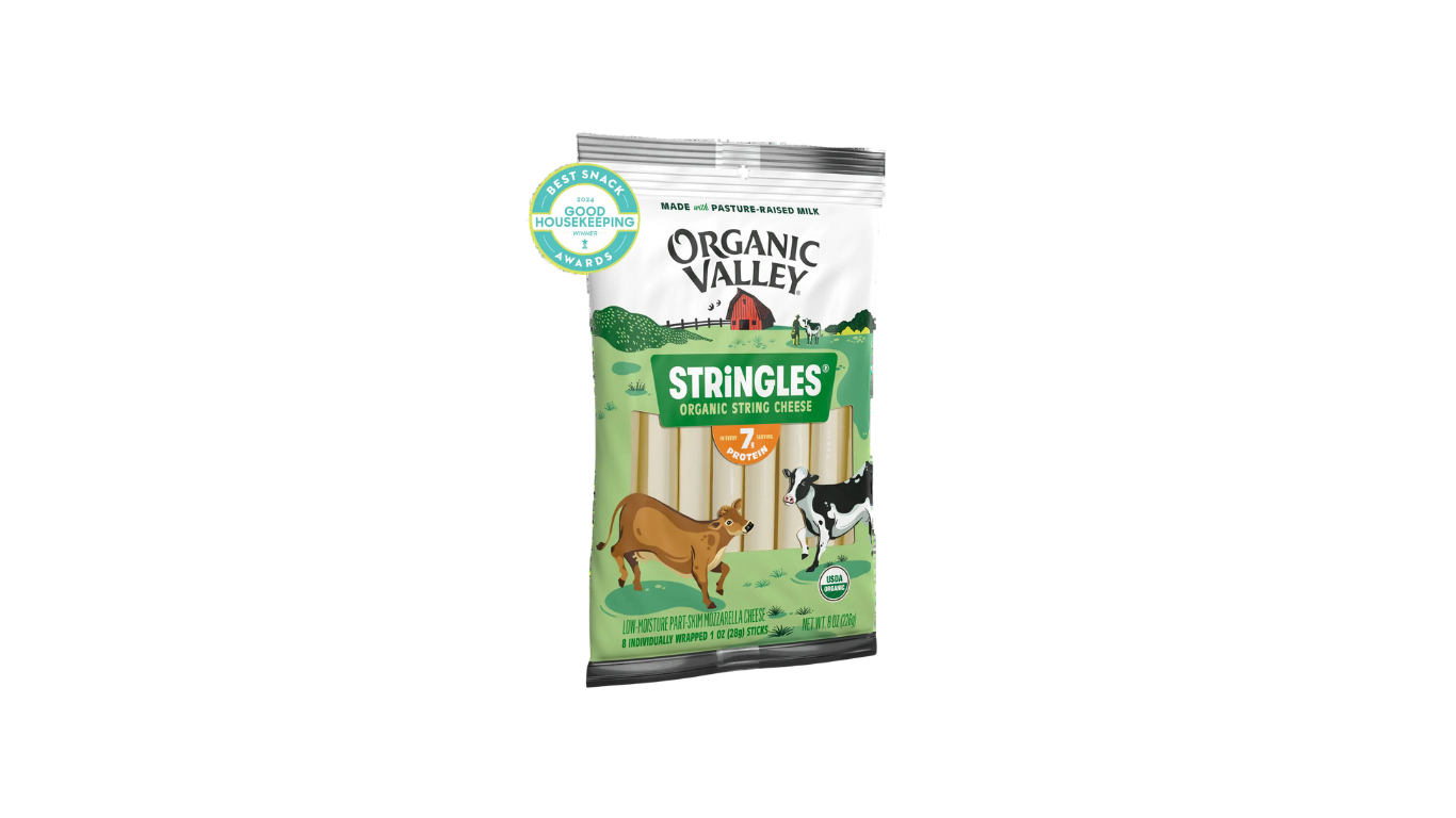 Phô mai sợi Organic Valley làm từ 100% sữa hữu cơ tách kem, giàu protein, béo nhẹ, dễ xé sợi. Thích hợp làm snack cho bé, dân văn phòng, picnic. Không kháng sinh, không GMO, tiện lợi mang theo mọi lúc mọi nơi.