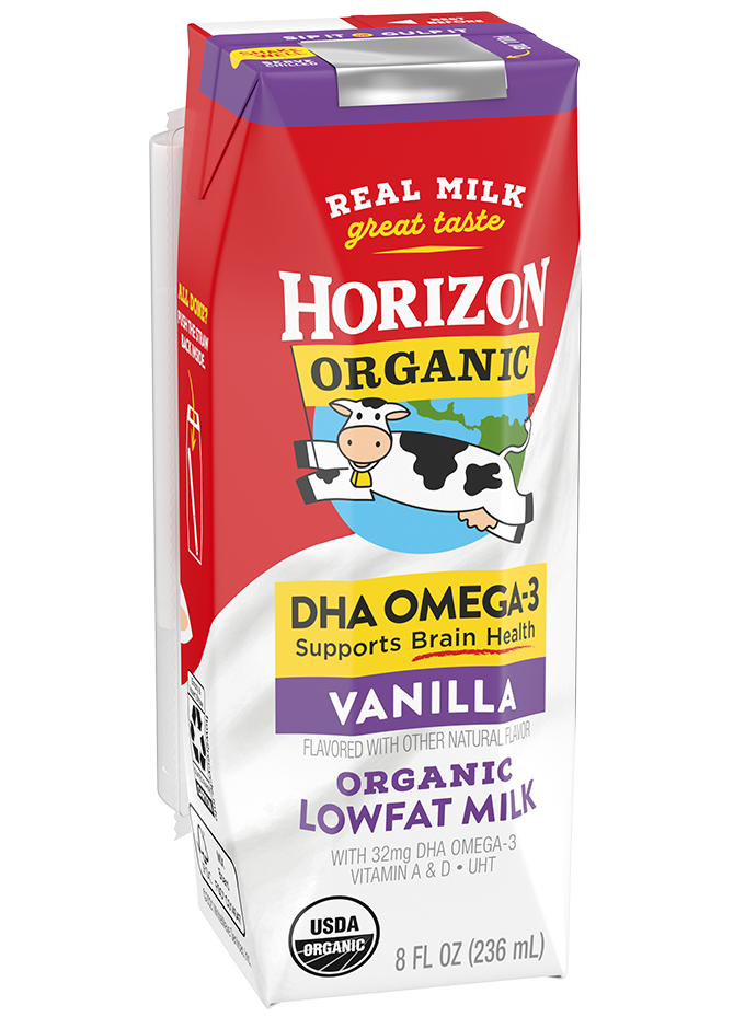 Hãy tận hưởng hương vị thơm ngon của sữa hữu cơ tách béo Horizon hương vani, được bổ sung thêm 32mg DHA Omega-3 tốt cho trí não và mắt. Sản phẩm hoàn hảo để mang theo trong những hộp cơm trưa, khi chơi thể thao và du lịch.