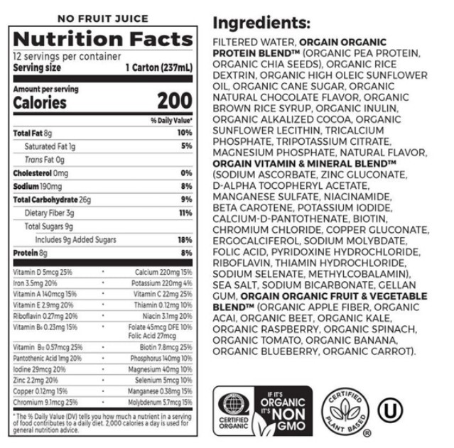Sữa Orgain Kids Plant Protein Chocolate là sữa dinh dưỡng hữu cơ từ protein thực vật, gồm đậu, hạt chia, gạo và rau củ hữu cơ. Sản phẩm cung cấp đầy đủ dinh dưỡng cho trẻ, vị chocolate thơm ngon, đạt chứng nhận USDA, an toàn và lành mạnh cho sức khỏe.